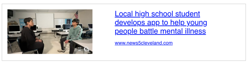 “Shlok Bhattacharya is an outstanding example of a Chagrin Falls High School student who is truly growing and thriving,” commented Chagrin Falls High School Principal, Mrs. Amanda Rassi. Director of Curriculum, Mrs. Becky Quinn, added, “Throughout Shlok’s outstanding career in Chagrin Falls Exempted Village Schools, he has continued to seek out opportunities to maximize his potential and challenge himself. His research and recent work has not only energized and grown him as a learner, but also has the capacity to truly make a positive impact upon the field of mental health, while also inspiring other students.”