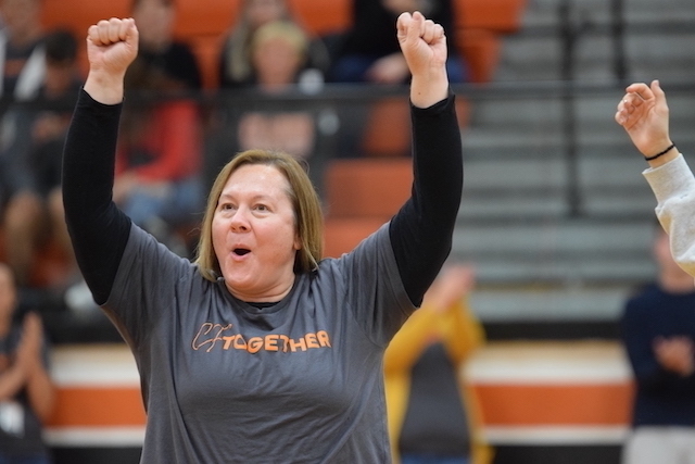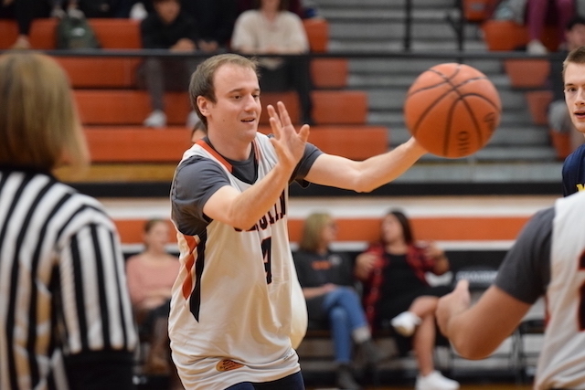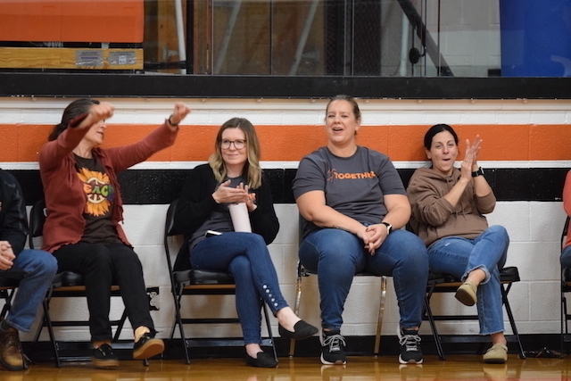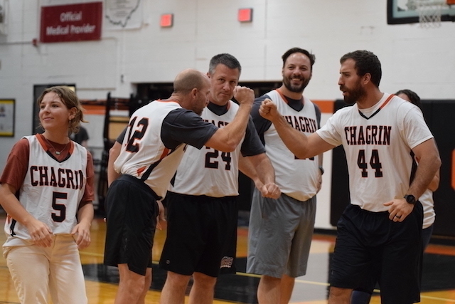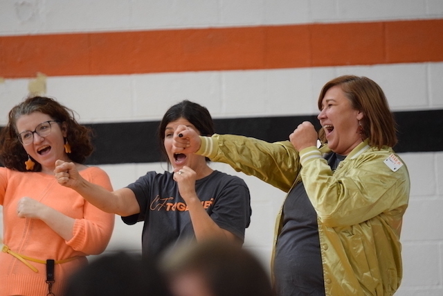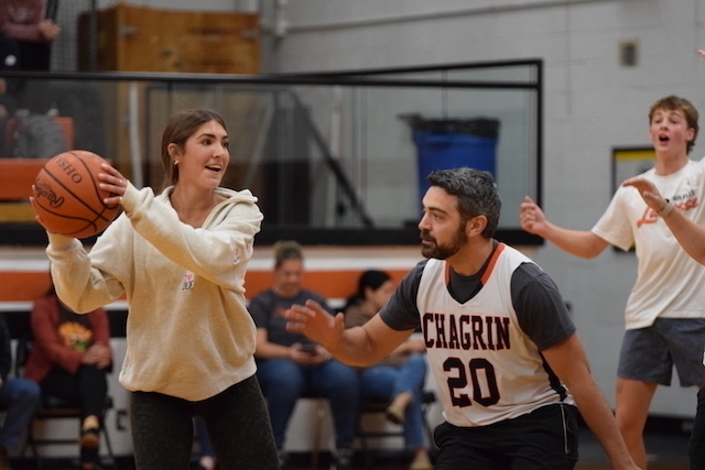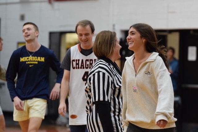 Each homeroom teacher was paired with a rival teacher in hopes of raising more money for the cause. The pep rally showcased each pairing then launched into a students vs. staff basketball team, which the staff won 9-6.