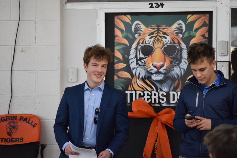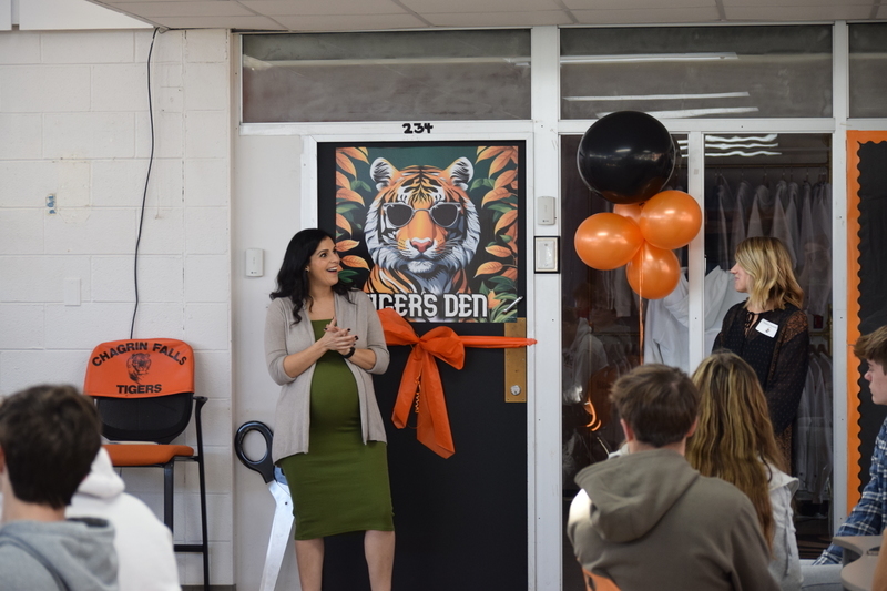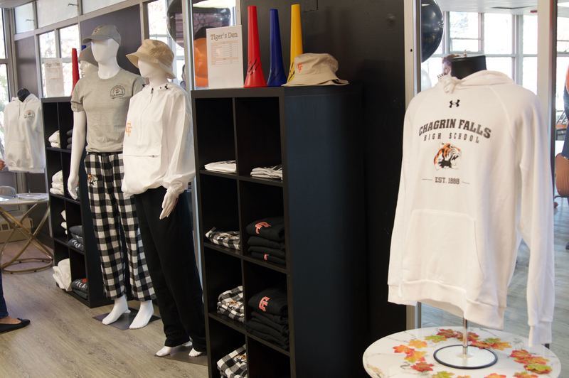 On November 13, Chagrin Falls High School (CFHS) held a ribbon cutting ceremony to celebrate the grand opening of Tiger's Den, the school's new spirit store run by students from the entrepreneurship class who brought the store to life. Products available include custom designed apparel, rally gear, home goods and accessories, and snacks. It is located in the high school commons.